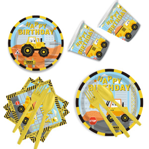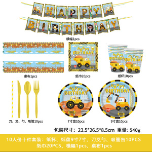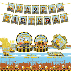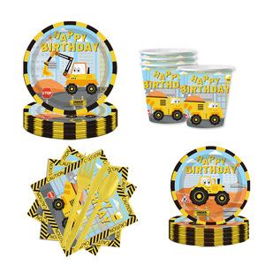 エンジニアリング車両テーマ男の子の誕生日パーティー用品装飾旗使い捨てプラスチックカトラリースプーン紙皿セット