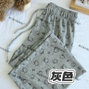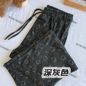 ハローキティ猫もち米ワイドレッグパンツレディース秋冬レイジースタイルカジュアルストレートウォーキングエクストラロングフロアモップ