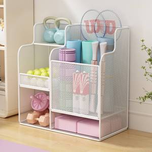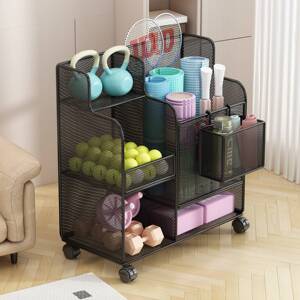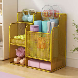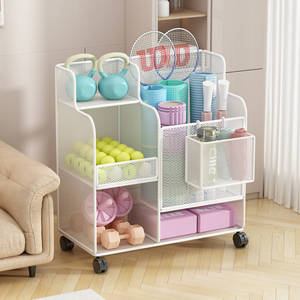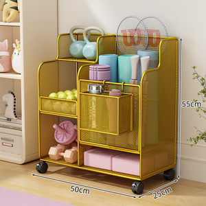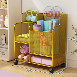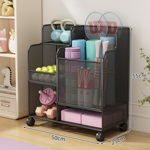 新款瑜伽垫收纳筐带轮健身器材收纳架家用夹缝羽毛球泡沫轴置物架