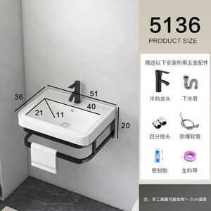 配龙头-不锈钢黑支架陶瓷盆51*36