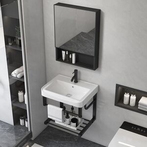 配镜子-不锈钢黑支架陶瓷盆48*37