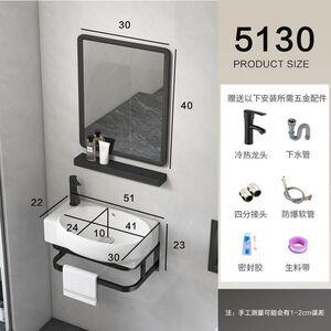 配镜子-不锈钢黑支架陶瓷盆51*36