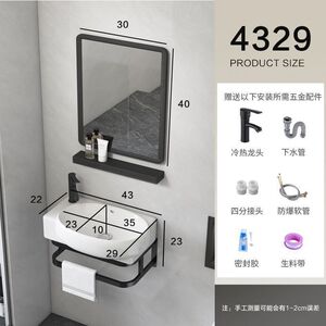 配镜子-不锈钢黑支架陶瓷盆43*36