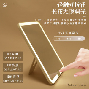 LED 化粧鏡ライト付きポータブル折りたたみ学生寮ポータブル女性オフィス化粧鏡デスクトップデスクトップミラー
