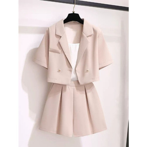 Xiaoxiangfengの新しい夏のツーピーススーツ、ネットセレブの小柄な人向けの半袖ショーツのプロスーツの完全なセット