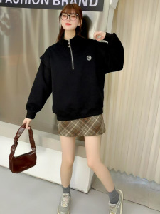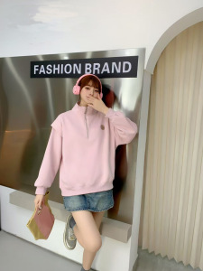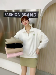女性用ラペルレトロスウェットシャツ、日本と韓国のシンプルなカレッジスタイル、ルーズショートスタイル、スリムスポーツカジュアルトップス、ファッショナブルな刺繍