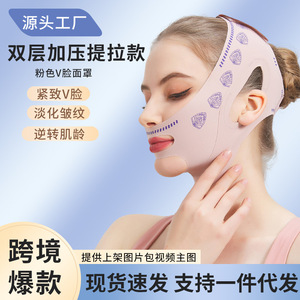 国境を越えた売れ筋のピンクの二重層加圧リフティング V フェイスマスク、顔の咬筋をリフトアップし、たるみ防止睡眠マスク
