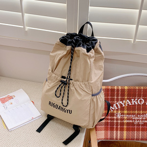 新学期新入生リュック無地シンプル巾着リュック日本のトレンド中学生ランドセルメンズ韓国版