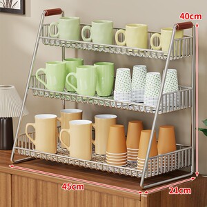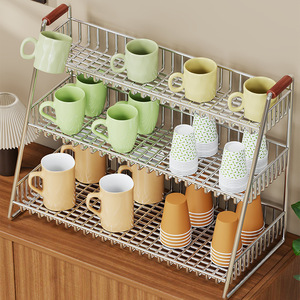 杯架杯子收纳置物架家用双层梯形不锈钢水杯架餐桌桌面茶杯沥水架