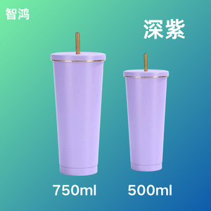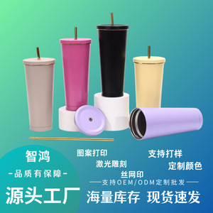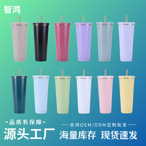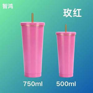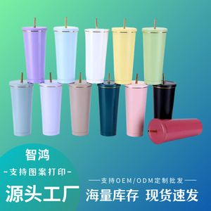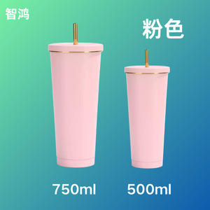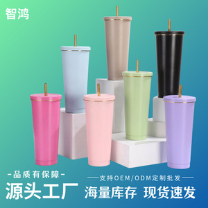 外国貿易 304 ステンレス鋼ストローカップゴールドエッジソリッドカラー大容量車のカップ車のシンプルな断熱カップ卸売