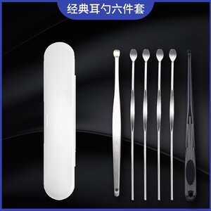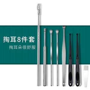 不锈钢掏耳勺6件套耳勺8件挖耳勺双头螺旋弹簧耳勺套装采耳工具