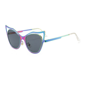 2025年新作クロスボーダーカラフルキャットアイメタルサングラス、ブルーライトカットフラットミラー、トレンディなストリートスタイルメイクアップメガネ