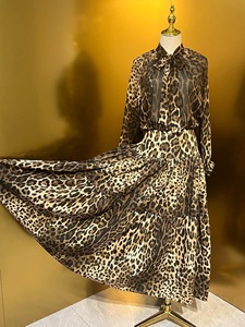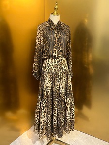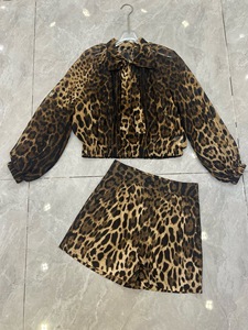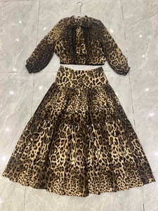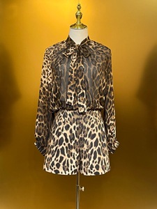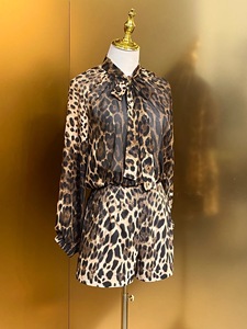 高级感豹纹套装雪纺真丝时尚上衣+棉布长半裙+棉布短裤显瘦优雅风