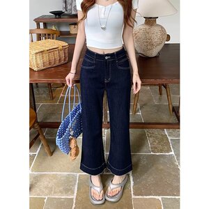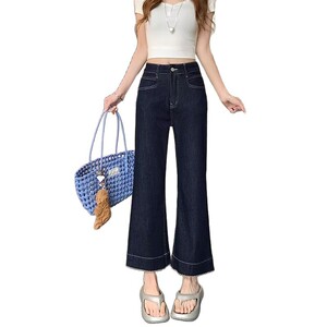 大きいサイズのレトロなストレッチジーンズ、女性用夏用薄いファットmmルーズハイウエストスリムストレートマイクロフレア9点パンツ