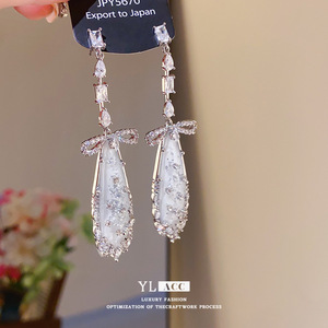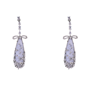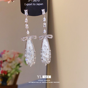 シルバー針ライト高級スタイルジルコンリボンドロップイヤリングヨーロッパとアメリカのファッションエレガントな気質ニッチパーソナライズされたイヤリング女性用