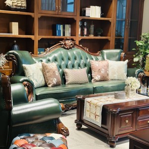 中古威士忌色美式全油蜡皮别墅豪宅家具头层牛皮手工拉扣沙发复古