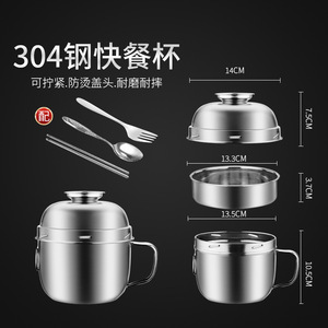 快餐杯304不锈钢大容量泡面碗食品级学生上班族打饭饭盒保温