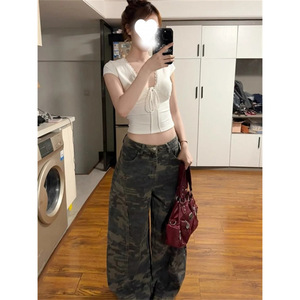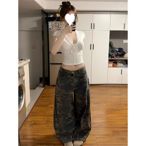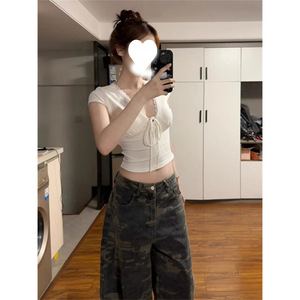 白色蕾丝拼接v领独特漂亮短袖t恤女夏季姐轻熟风气质辣妹紧身上衣