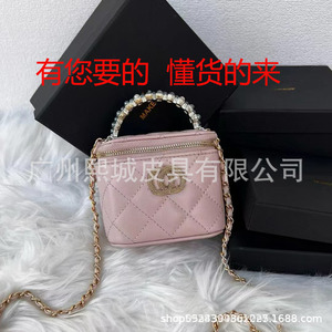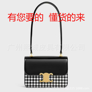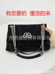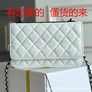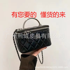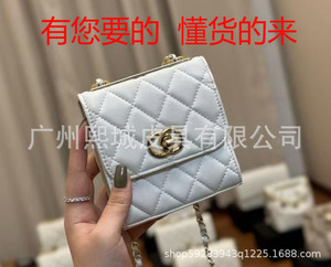 欧美时尚小方包单肩包包女马鞍包小香风羊皮链条邮差牛角法棍包