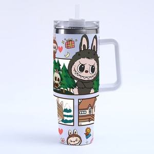 拉布布40oz汽车杯同款不锈钢Labubu冰霸保温杯卡通图案大容量拉环