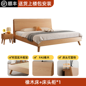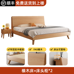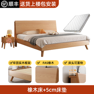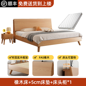 オーク材ベッド + 5cm ココナッツパームマットレス + ベッドサイドテーブル * 1 (2 階 + 設置込み)