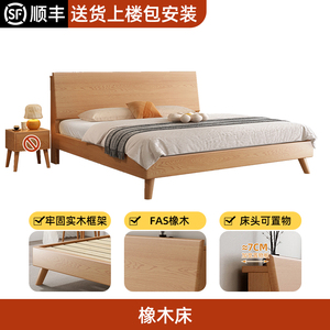 総無垢材ベッド モダン シンプル ダブルベッド マスターベッドルーム 1.5m 家庭用ログベッド レンタルルーム 1.2m シングルベッドフレーム