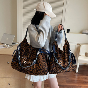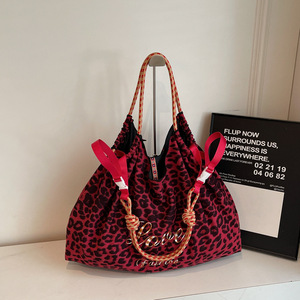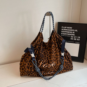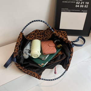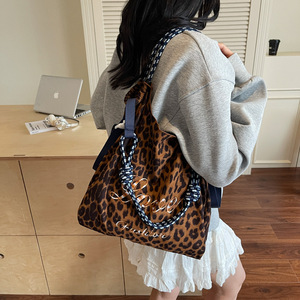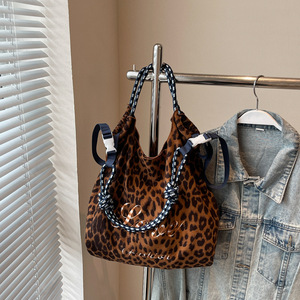 レトロヒョウ柄ショルダーバッグ、ベルベットバッグ、おしゃれな大容量トートバッグ、トレンドのハンドバッグ、万能通勤クロスボディバッグ