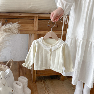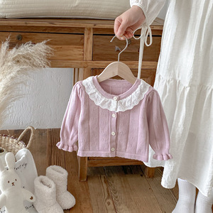 ins 韓国秋の新製品女の赤ちゃんニットカーディガンジャケット幼児レース襟多用途ジャケットトップ