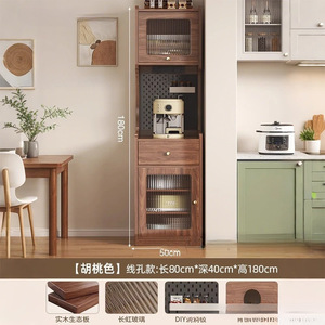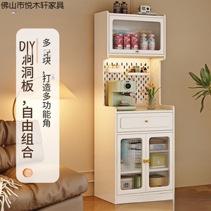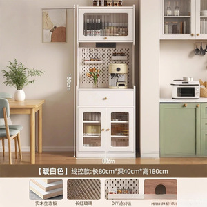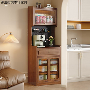 实木餐边柜储物柜小户型茶水柜简约中式中古风洞洞板收纳餐厅高柜