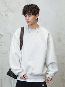 ヘビーウェイトスペースコットンラウンドネックスウェットシャツメンズ秋スタイルスプライシングボクシーバージョンアメリカンレトロカジュアルプルオーバージャケット