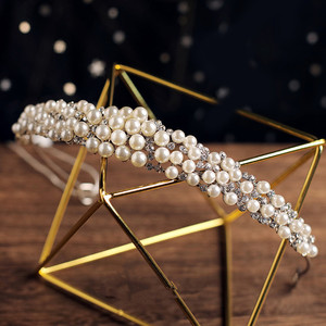 ブライダルウェディングベールヘッドバンド合金パールラインストーン小さなクラウンヘアアクセサリーヘッドバンド日本、韓国、ヨーロッパ、アメリカ、ヨーロッパのクロスボーダー