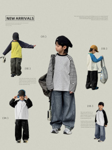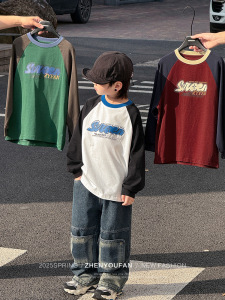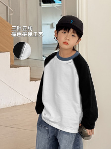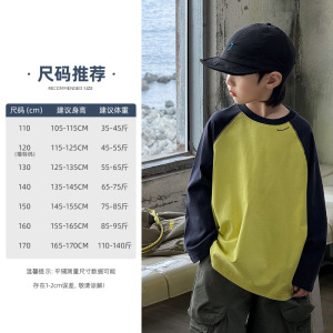 男の子用カジュアル長袖Tシャツ、2025年秋新作、子供用純綿肌に優しいTシャツ、大きい子供用春秋ラウンドネックトップス