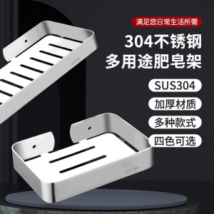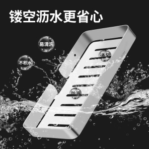 卫生间不锈钢肥皂架浴室免打孔置物架壁挂式方形香皂盒厕所沥水架