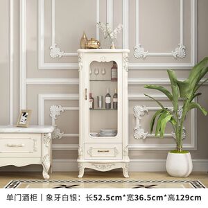 (ヨーロピアンライトラグジュアリー)シングルドア大型ワインキャビネット アイボリーホワイト&シルバー