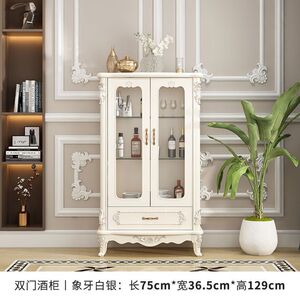 (ヨーロピアンライトラグジュアリー)アイボリーホワイトとシルバーの小さなワインキャビネット