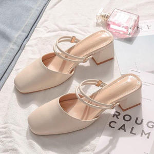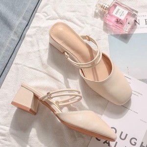 夏外穿中跟单鞋多巴胺配裙子软皮一脚蹬两穿凉鞋粗跟包头半拖鞋女