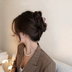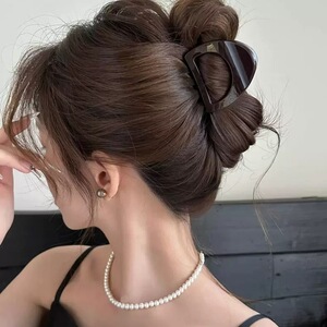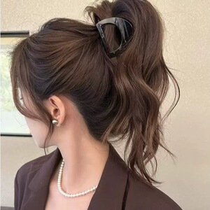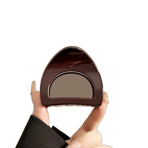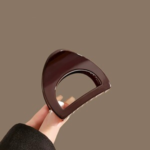 髪のボリュームが少ない女性向けのチョコレートカラーの中空半円ミディアムグリップクリップ、後頭部にハーフタイヘアクリップ付きのハイエンドシャーククリップ