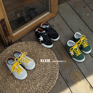 子供靴 2025 秋の新女の子カジュアルシューズ韓国スタイルレトロ古い色のスターシューズヌバックレザーダーティーシューズ
