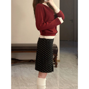 复古波点半身裙女2025夏季新款显瘦高腰包臀a字中裙大码呢子短裙