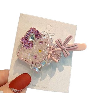 甜美粉色少女心镶水晶Kt猫发夹时尚可爱珐琅滴油蝴蝶结发卡边夹