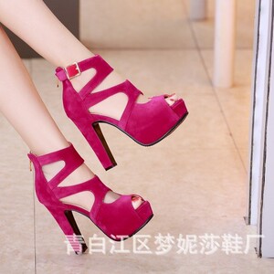 欧美时尚鱼嘴高跟鞋罗马交叉绑带粗跟防水台凉鞋磨砂夏季超高跟鞋