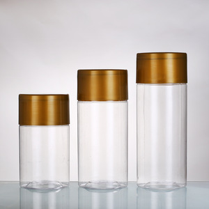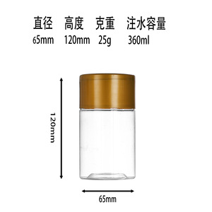 65口细长塑料瓶金色高盖 密封罐子 透明食品罐
