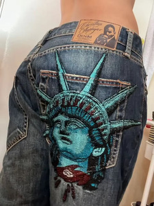 ヨーロッパとアメリカのクロスボーダー 2025 新しい自由の女神レトロ古いウォッシュジーンズ男性と女性のトレンディなストレートパンツ