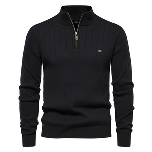 秋と冬の新しいヨーロッパサイズクロスボーダースタンドカラーメンズセーターハーフジップソリッドカラーニット高品質セーター男性