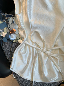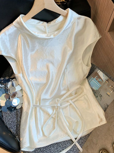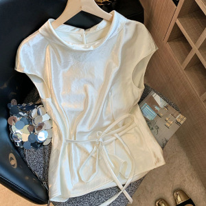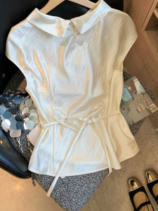 光沢のあるアセテートサテンウエストノースリーブシャツ女性のための 2025 夏の新しいフレンチスタイルのハイエンドシャツトップ