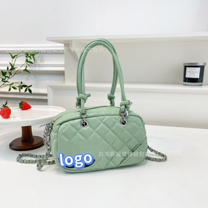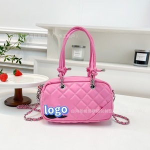 小香风欧美风女士单肩斜挎包新款保龄球时尚菱形枕头包手提包批发