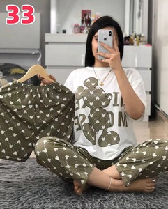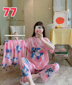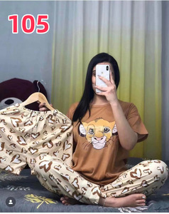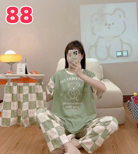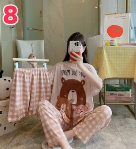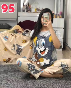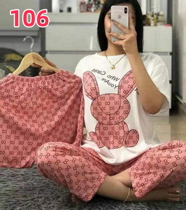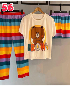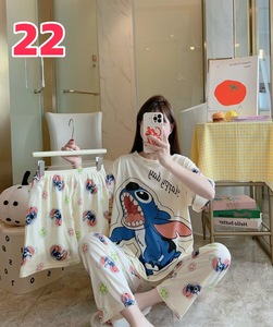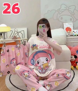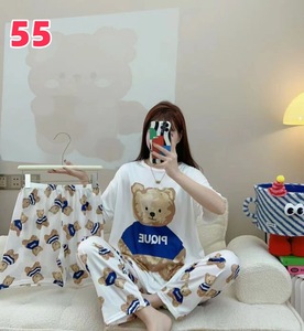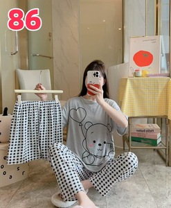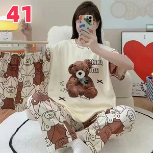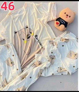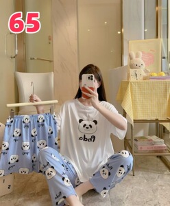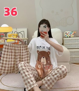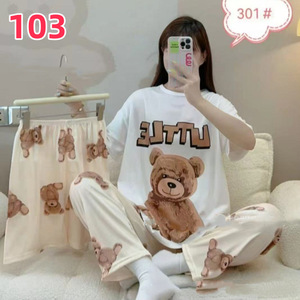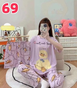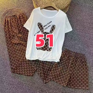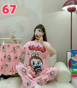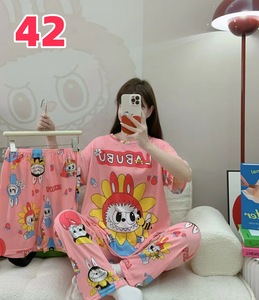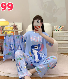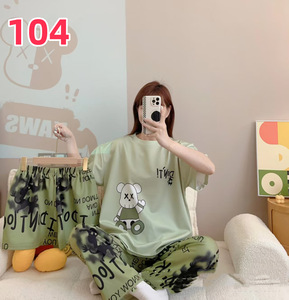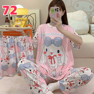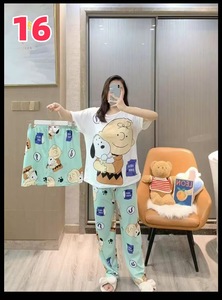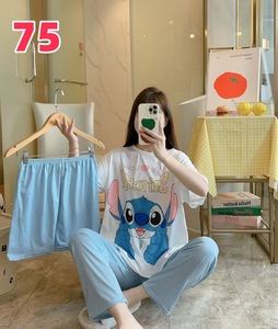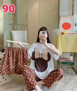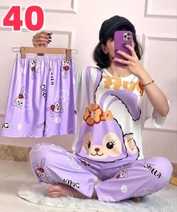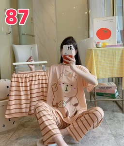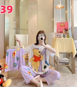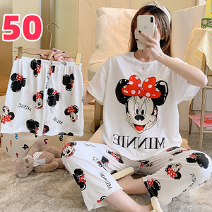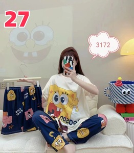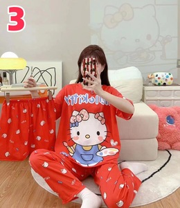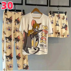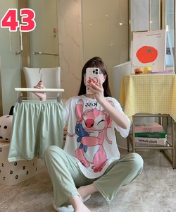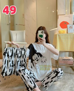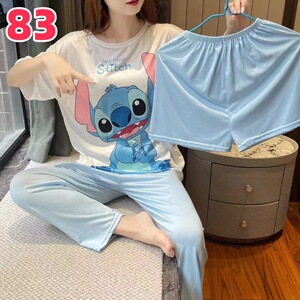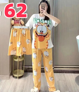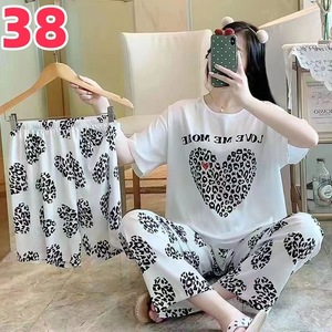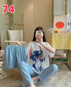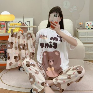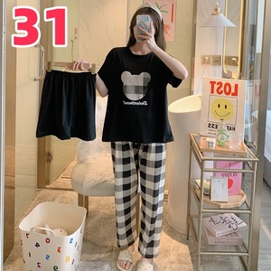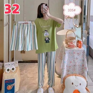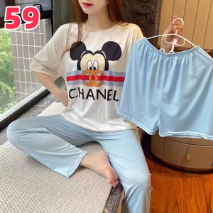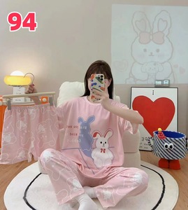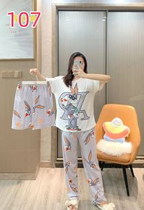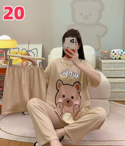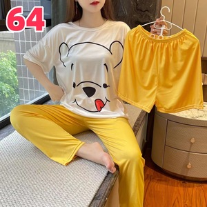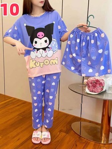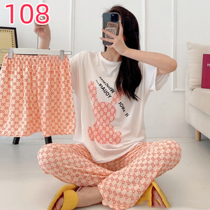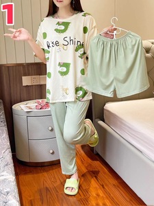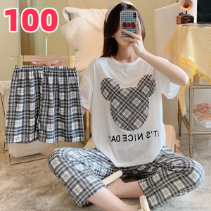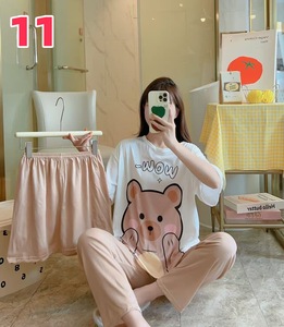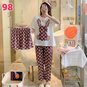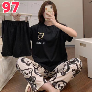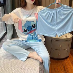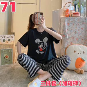 睡衣女夏季新款卡通三件套可爱简约休闲圆领家居服套装可外穿