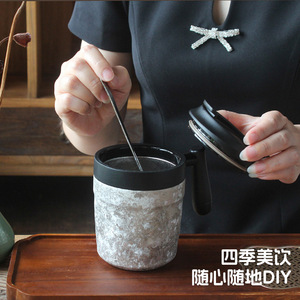 男性と女性のための見栄えの良い純チタン断熱カップ、蓋付き断熱コーヒーカップ、ティーカップ、ポータブルハンドル、オフィスカップ、ウォーターカップ