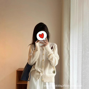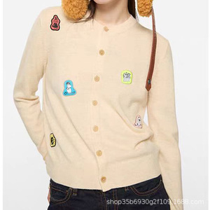 高品質 2025 秋の新ニットカレッジラウンドネック多用途カジュアル長袖カーディガンセーター刺繍ジャケットトップ