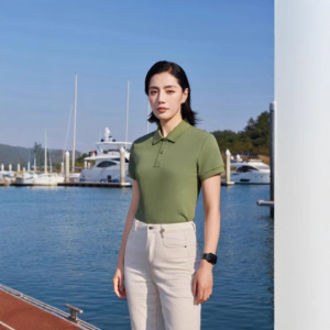 ソロナ クール感ポロシャツ シンプルワークウェア 半袖Tシャツ 夏向けトレンドブランド 無地 ラペルポロシャツ メモリーネック 通気性